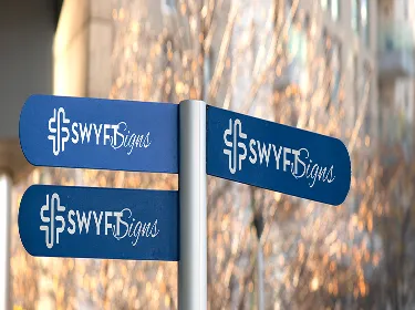 Guide your visitors seamlessly with Swyft Signs' wayfinding solutions. Designed to match your brand, our signs provide clear, stylish navigation for any space, from offices to retail complexes. Choose from a variety of materials and designs to enhance both function and style.